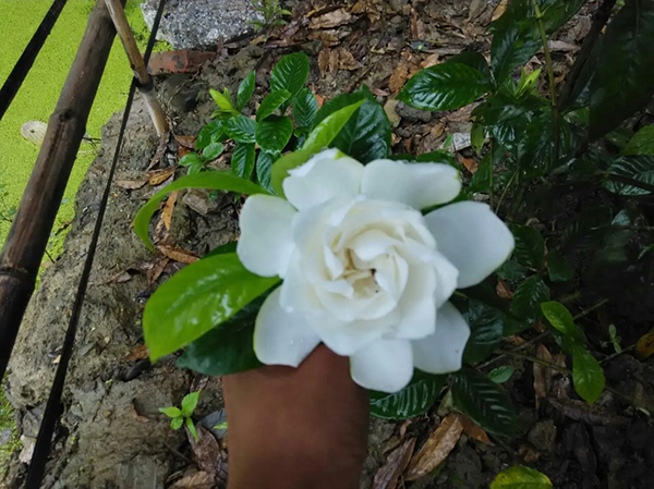 大花梔子為梔子花的變種。為茜草科梔子屬植物。為常綠灌木。單葉對生或3葉輪生。喜濕潤、溫暖、光照充足且通風良好的環境。可用扦插、壓條、分株或播種繁殖。