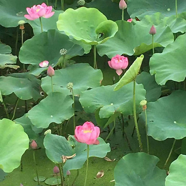 作四季有花可賞中的夏花:四時景觀的不同,是中國造園家恪守的造園規則,如梅花耐冬,柳絲迎春,綠荷消夏,桐葉驚秋。荷花的綠色觀賞期長達8個月,群體花期在2-3個月左右。夏秋時節,人乏蟬鳴,桃李無言,亭亭荷蓮在一汪碧水中散發著沁人清香,使人心曠神怡。