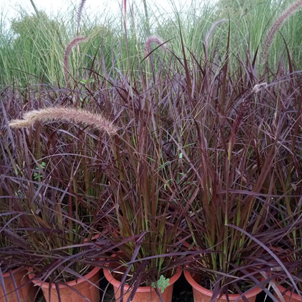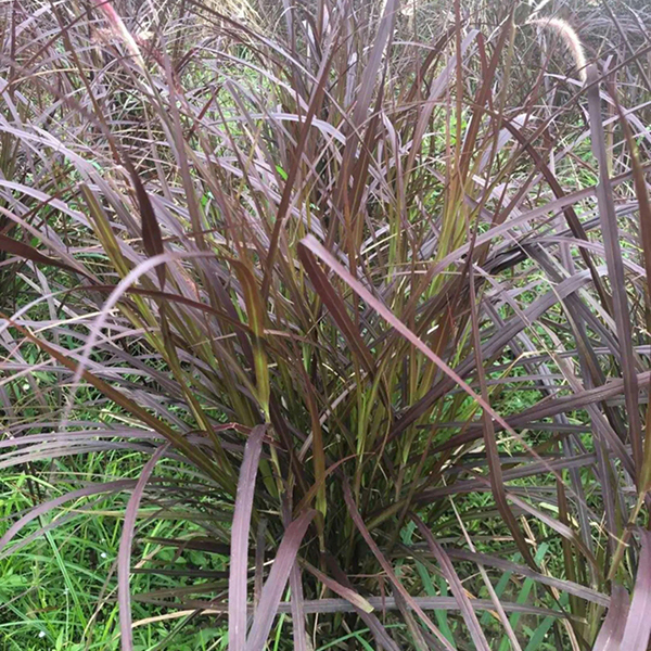 一般指紫穗狼尾草,植株叢生,高60-90厘米左右,葉片深綠色,呈線形,圓錐花序較直立,略高于葉片,剛毛較粗糙,顏色一般為深紫色。
